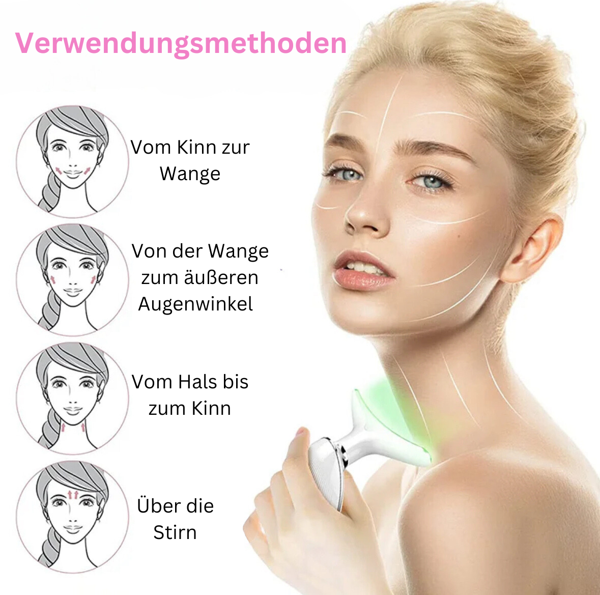 Doppelkinn und Falten ade! 45°C Wärmefunktion sorgt für exzellente Hautdurchblutung, Kollagenproduktion, Hautstraffung und Lifting